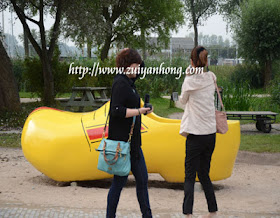 yellow giant wooden shoe is truly eye catching. It's a hot spot for visitors of